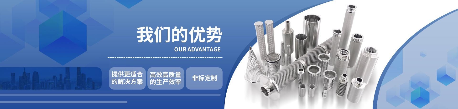 >> 不銹鋼過濾筒、不銹鋼濾芯、燒結網濾芯、各種不銹鋼過濾器、過濾袋、過濾片、錐形濾筒、不銹鋼工藝品、消毒筐、不銹鋼網、不銹鋼過濾網、油煙濾網及各種精 密沖壓件等三百多種過濾器材制品。產品廣泛應用于石油、化纖、采礦篩選、冶金、機械制造戶提供專業和及時的售后服務。